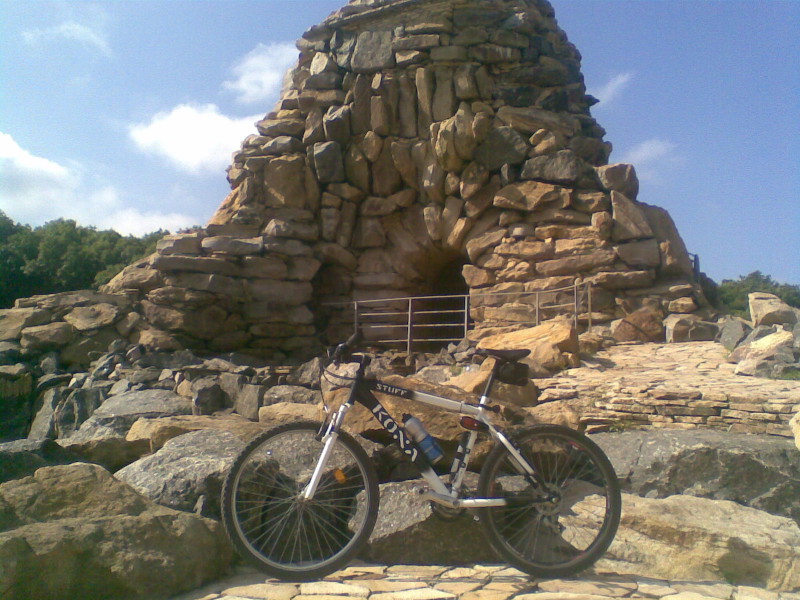!!!Вот это меня поразило больше всего))ну ладно,заехал в сам парк,сделал несколько фоток на мобилу,подошёл к админу туташниму, узнал что, почём и когда и за одно спросил как мне выехать назад(разворачиваться не хотелось).Побыв там не больше 30 минут начал выдвигаться домой.Проехался немного по грунтовке,нашел ту же дорожку и поехал.Доехал до Ольгинки и подумал:-Да чё там,я же один,а у моего дядьки дача под Новотроицком,еду туда! Выехал на мариупольскую трассу,кстати в сторону Донецка она значительно лучше, нашел таки эту дачу,меня встретили радушными обьятиями. Скушал мисочку клубники,выпил холодного молочка,заправился водичкой и погнал домой.Хотя ПОГНАЛ это громко сказано)))Еду,машин дофига,фур еще больше...на Еленовке поворачиваю на уже знакомое Сигнальное и Луганское.Ветер в лицо,ехать тяжко но еду.Выехал на тот же Текстильщик,вспомнил что надо было носки купить,поехал покупать.Купил!Ура!Наконец-то домой.Ну вот так и доехал.НА спидометре 128,5 км средняя уже 24,5 км/ч, на часах 13:00.НУ вобщем поездка понравилась,в лесу таки хорошо!Если кто захочет можно будет поехать еще!