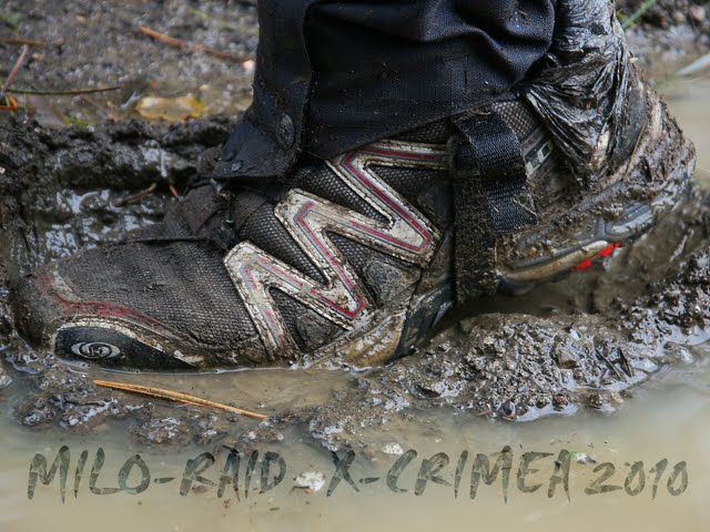 первый прокол Димон клеется, подъем "втупую" на яйлу, пока идешь почти нехолодно )), "Ветер,туман и снег" (с) БГ, иногда лучше бежать пешком, чем ехать верхом - ТЕПЛЕЕ )), этап пещера спуск-подъем и уроки макрамэ )), термо-одеяло - весчь ), второй прокол Шава, КП на памятнике и так 3 раза подряд - героические места, столько луж не переежал за всю жизнь, на плоты приходим с тыла - по берегу, Мегавольты уже здесь,